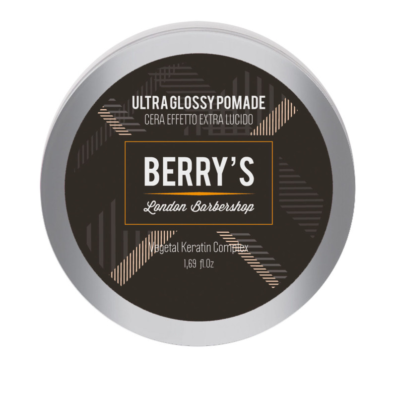 Помада для укладки Brelil Ultra Glossy Pomade - це професійний продукт лінії Berry's London Barbershop для використання в чоловічому залі. Надає волоссю глянсовий блиск і має середню ступінь фіксації. Помадка відрізняється пластичною консистенцією, дозволяє створювати різні форми і змінювати їх, надає волоссю напрям і не склеює його. Формула помадки сформована на основі рослинних кератинів, які оберігають від впливу факторів ззовні і надають красиву пишність. Ultra Glossy Pomade закріплює, але не висихає, і не надає пасмам огрубілу текстуру. З її допомогою робляться строгі і креативні проділи.